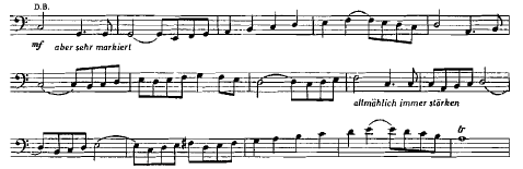 아래는 더블베이스를 효과적으로 오케스트라에서 사용한 예이다.