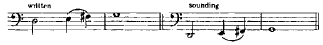 더블 베이스는 실제 소리나는 것보다 한 옥타브 높게 기보된다.